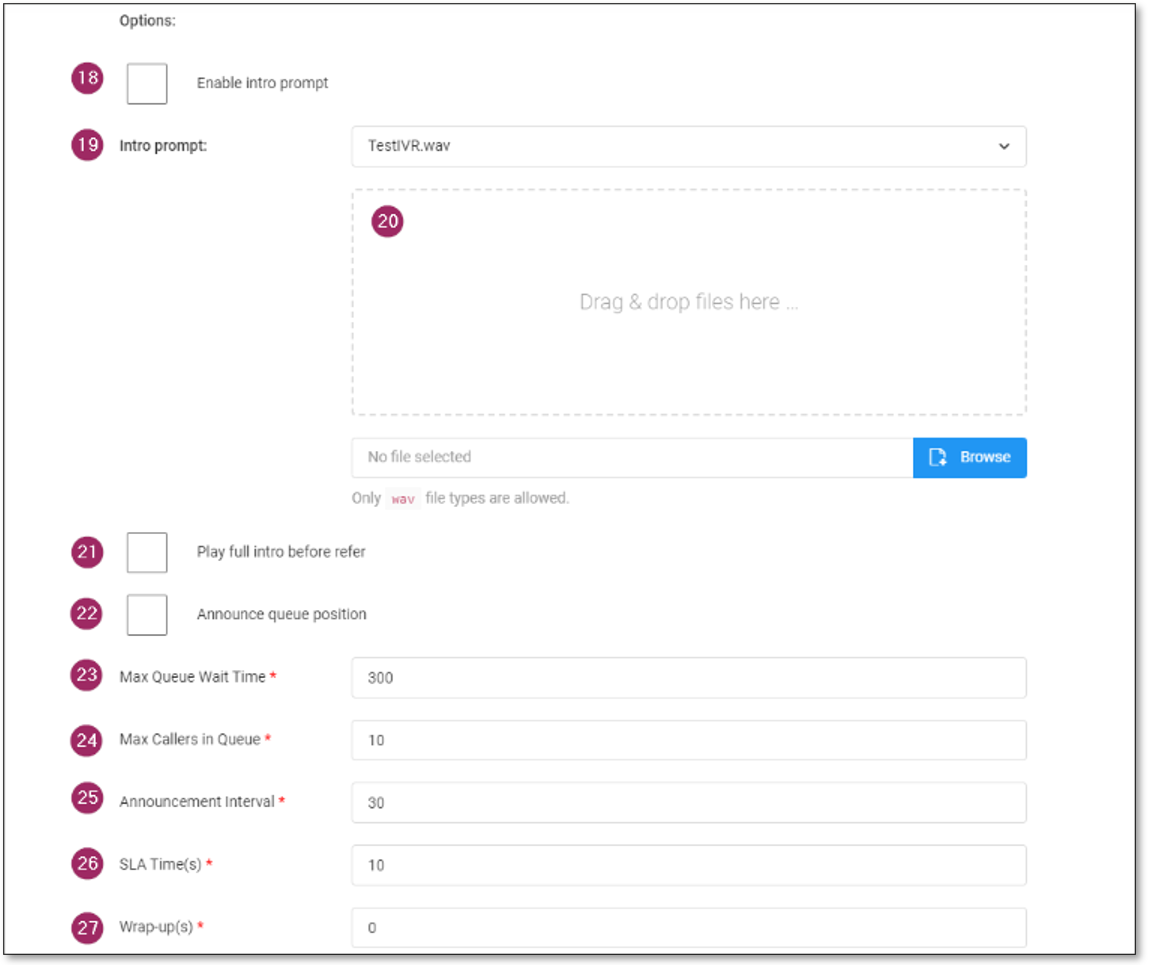 | Drag & drop new audio – Drag and drop or upload new audio files for music on hold via the browse button. Note: only .WAV files are currently supported. | |
